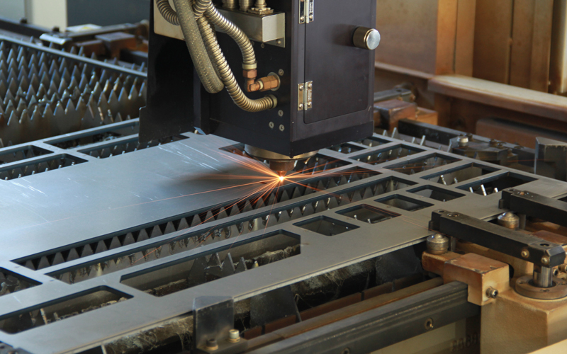レーザー加工機で金属板を自由な形状に切断・マーキング後、プレスブレーキで複雑な曲げ加工を行っております。